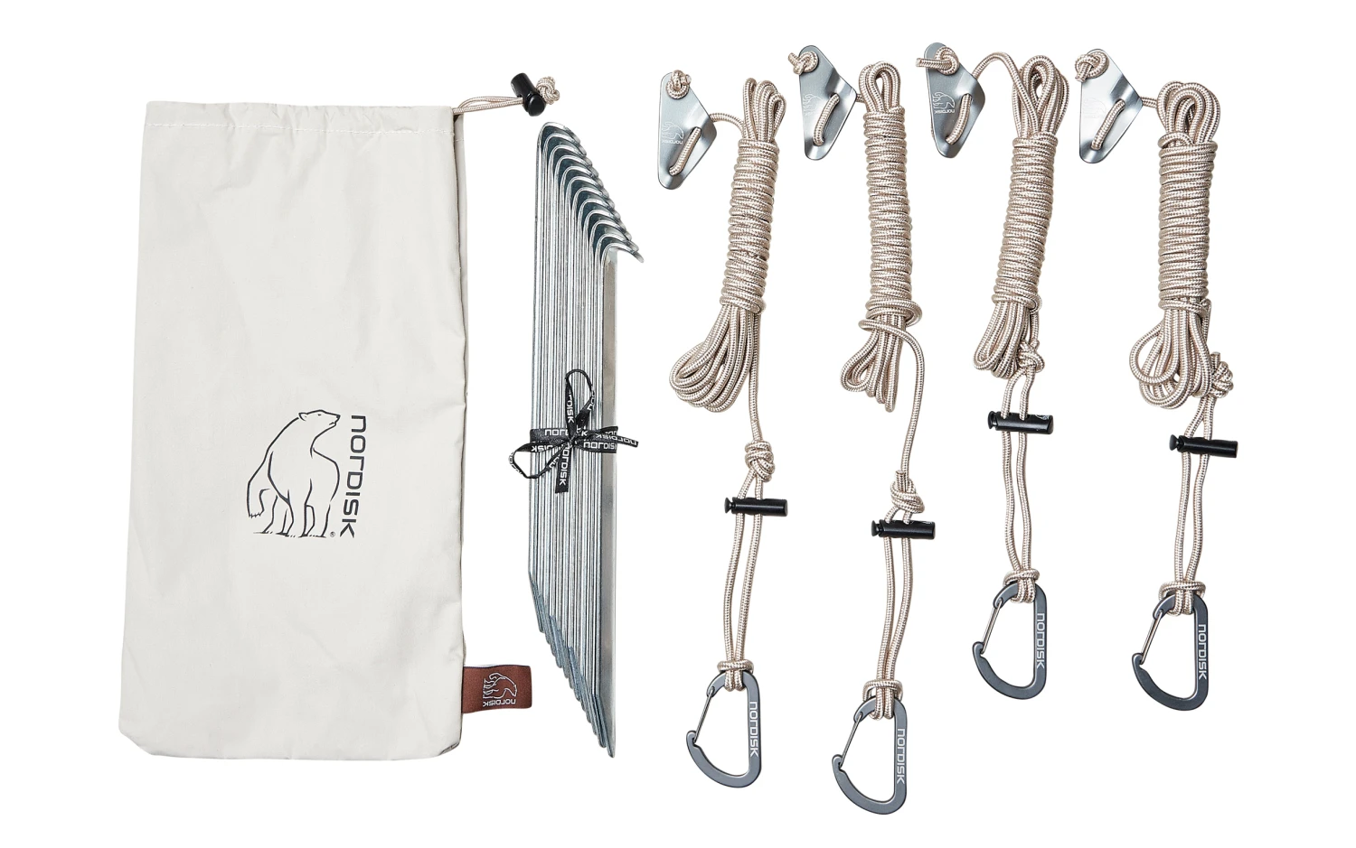 Zwei verstellbare Stangen, 12 Stahl-V-Pegs und 12 verstellbare Abspannleinen sind im Lieferumfang enthalten.