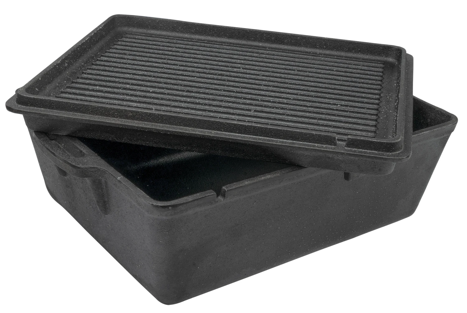 Massive Kastenform aus Gusseisen mit einem Fassungsvermögen von 5,5 Litern – perfekt als Backform, für Aufläufe und Braten.