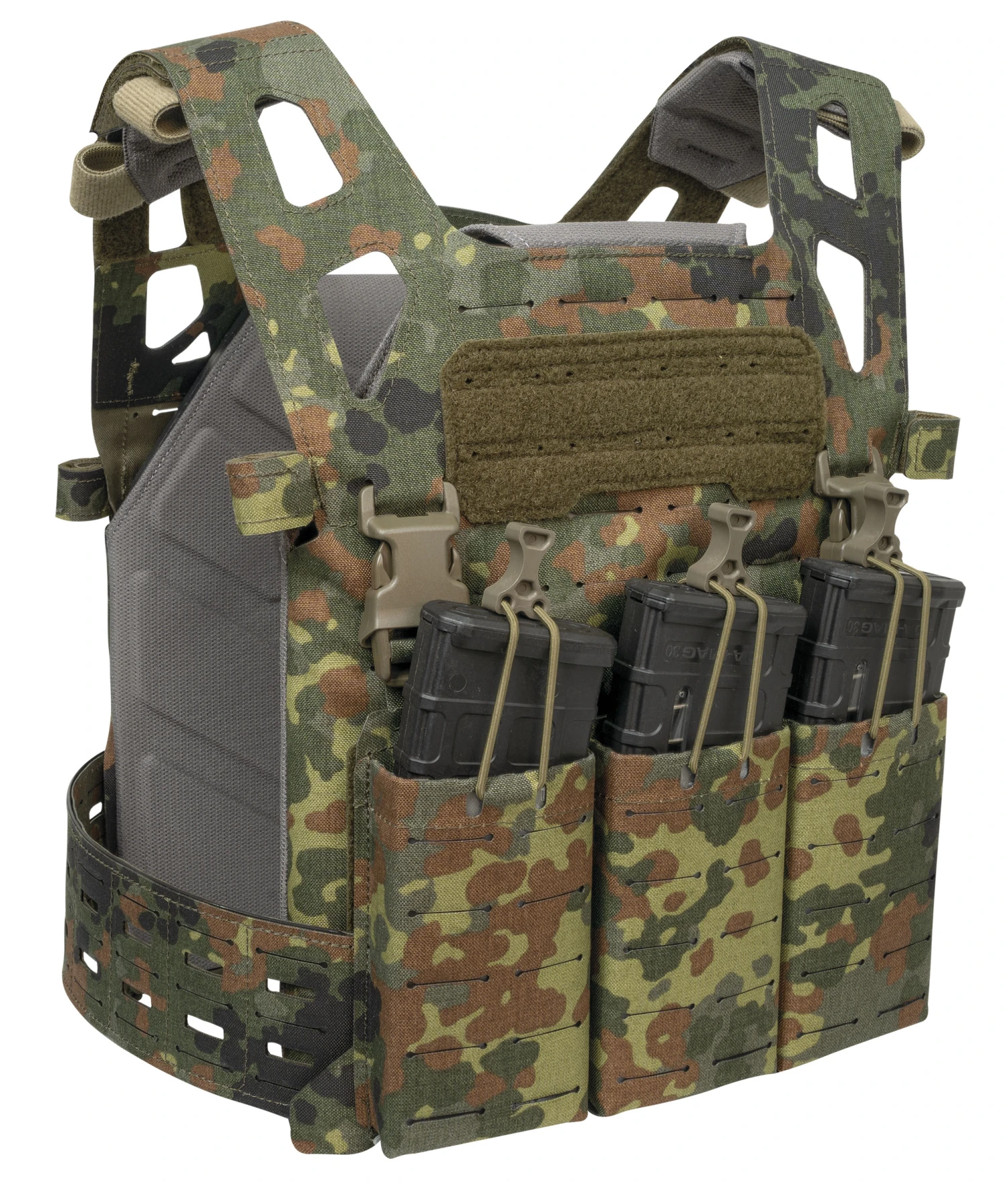 Lasercut MOLLE auf der Front- und Rückseite.